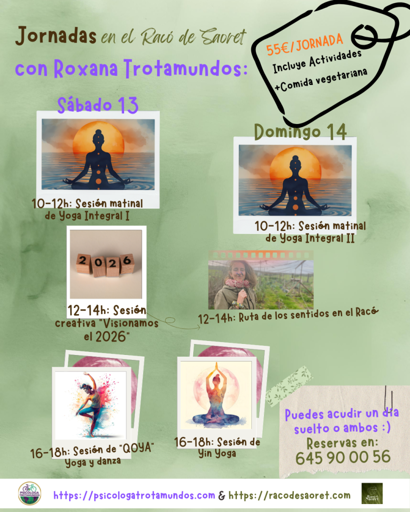 Mi trabajo es una fusión de Ecopsicología, Terapia Breve, Terapia de Aceptación y Compromiso (TAC) entre otras… También soy profesora de Yoga Integral y Meditación, especializada en Yoga sensible al trauma.